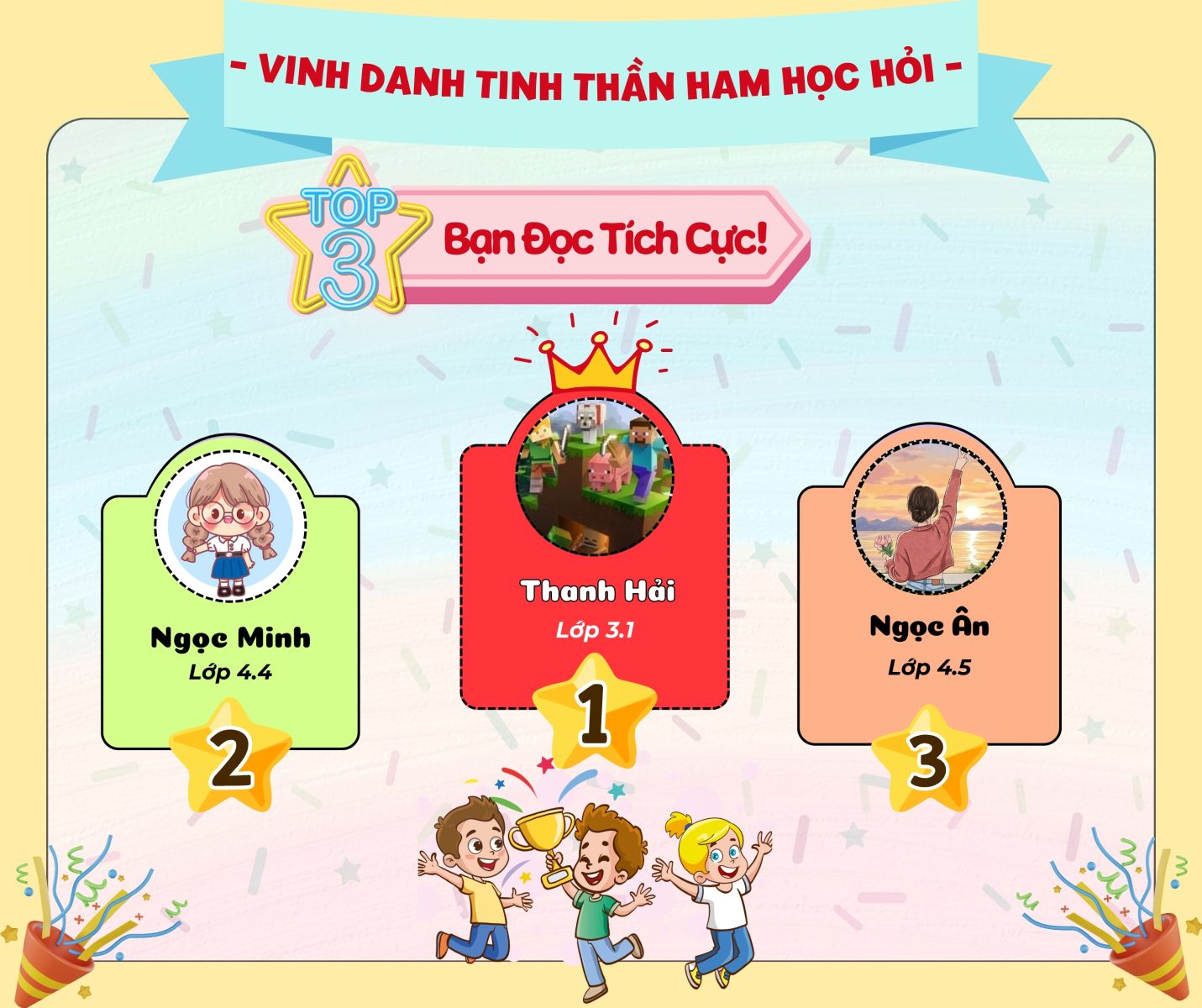 Nhà trường ghi nhận sự cố gắng, chủ động học tập của các bạn và hy vọng hoạt động này sẽ tiếp tục lan tỏa rộng rãi, giúp các bạn nhỏ yêu thích đọc sách hơn mỗi ngày.